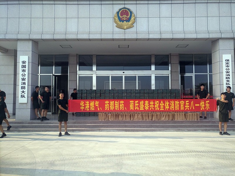 藥都制藥集團聯合藺氏盛泰藥業,華港燃氣公司共祝安國市消防大隊全體官兵八。一建軍節快樂,你們辛苦了!